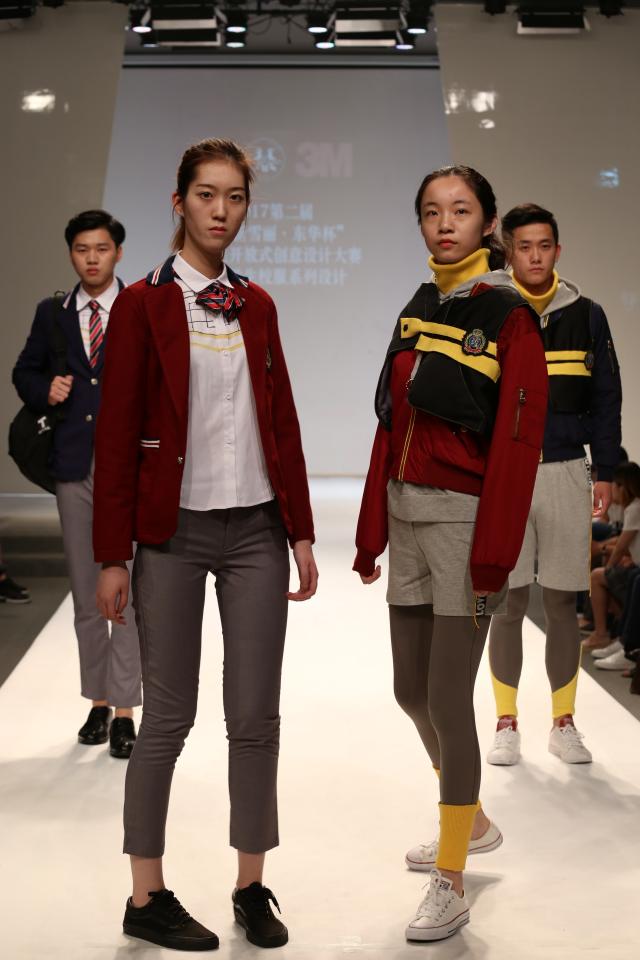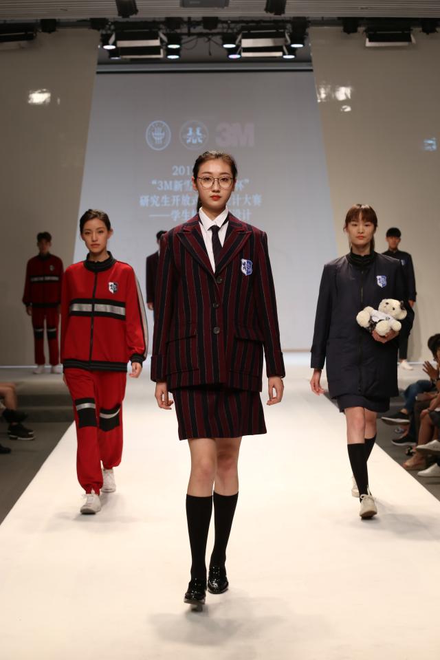 比赛中,服装与艺术设计学院研究生团队将3M高科技材料与青春时尚的设计理念充分结合,通过设计突出校服的功能性、时代性和文化性,演绎出了别样的校服气质。