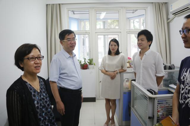 校党委书记朱民察看延安路校区新学期开学准备工作