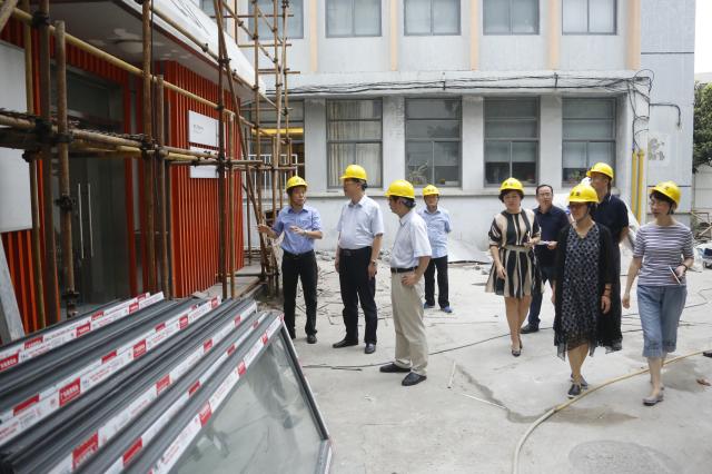 (朱民一行察看服装与艺术设计学院实训大楼整修进展)