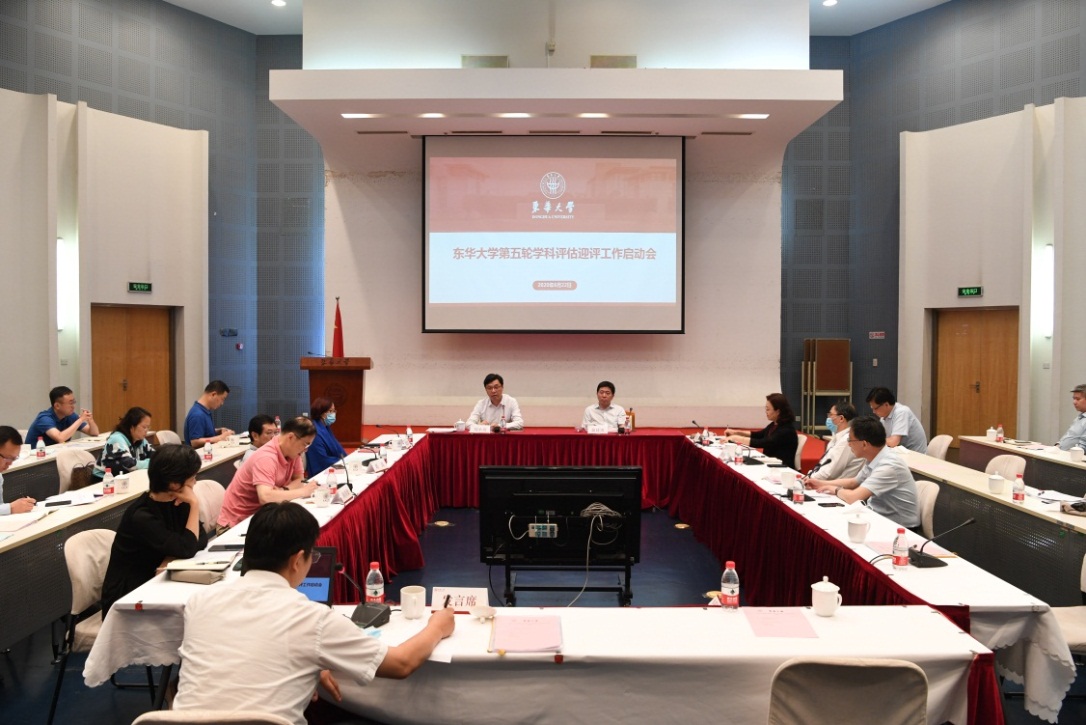 6月22日,学校在松江校区召开第五轮学科评估迎评工作启动会。党委书记刘承功,校长俞建勇,党委副书记刘淑慧、崔运花,副校长邱高、卿凤翎、陈南梁、舒慧生、李炜出席会议,各学院院长及相关职能部处负责人与会。会议由舒慧生主持。
