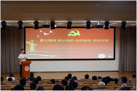 6月22日,材料学院党委举行以“薪火相传初心依旧 砥砺奋进 使命在肩”为主题的“四史”学习教育示范党课,通过四个篇章的生动讲述,充分挖掘学院发展历程中的红色基因,将“四史”学习教育与回顾材料学科发展史、与一代代科研工作者的奋斗史紧密结合,激励党员以国家富强民族复兴为己任,为建设纤维纺织强国贡献力量。