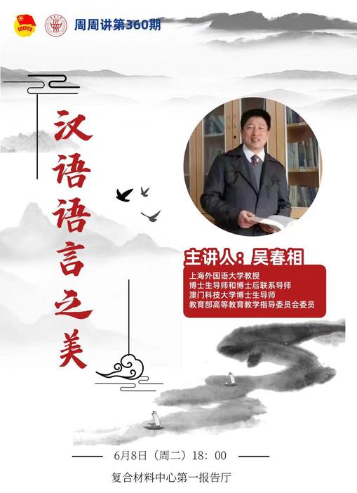 讲座简介:汉语博大精深,美在听得见的铿锵音韵,美在运用时的千变万化,更美在五千年的历史底蕴。讲座结合大量示例,从韵律、语用、修辞、文化等多个角度,对汉语的“美”进行解读。